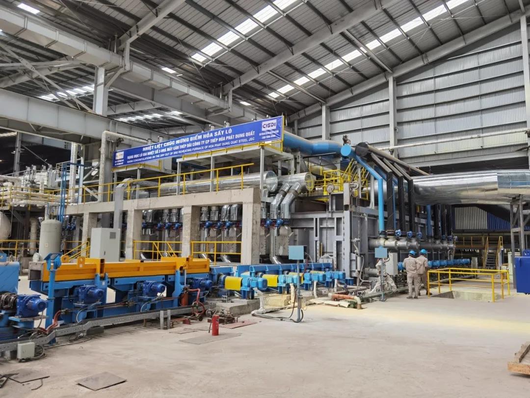 該項目由中冶賽迪總承包建設,包含項目設計、設備供貨、施工、調試到試生產。1號3號兩座加熱爐應用了中冶賽迪自主研發的雙蓄熱燃燒技術和汽化冷卻技術,具有高效、節能、低燒損、低排放等技術優勢,生產節奏在同類型加熱爐中達到國際領先水平,每小時出鋼數量超過一百根。其中1號加熱爐已于今年2月21日投產,此次3號加熱爐的順利點火標志著越南和發榕橘1號3號加熱爐項目已經完成施工工作,進入熱試階段。
