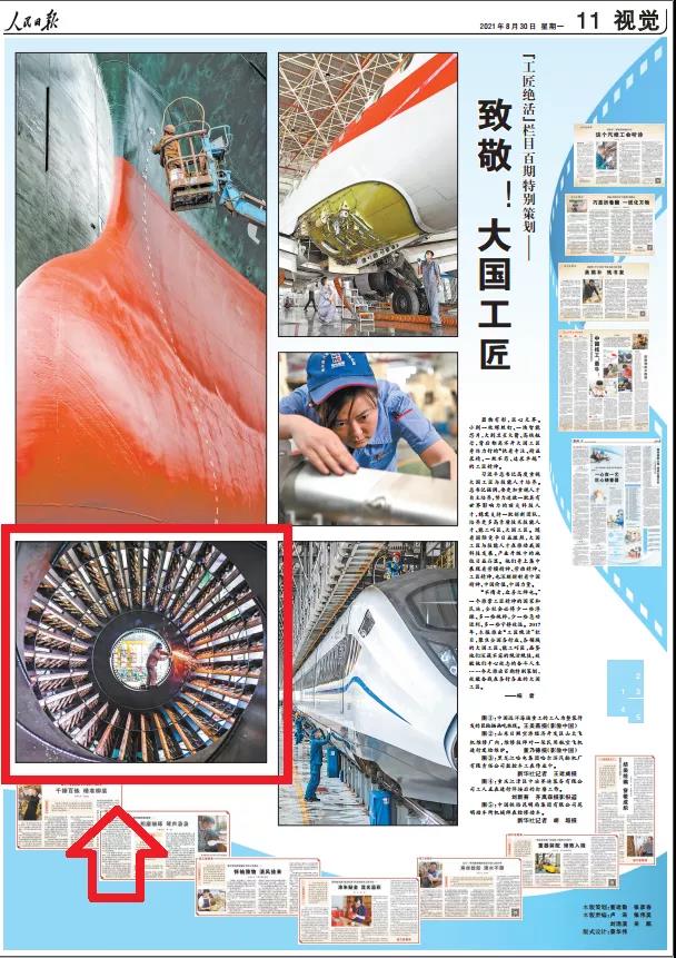 8月30日,《人民日報(bào)》第11版“工匠絕活”欄目推出百期特別策劃——致敬!大國工匠,致敬奮戰(zhàn)在各行各業(yè)的大國工匠。其中,中冶賽迪裝備有限公司(簡稱:賽迪裝備)工人打磨工作鏡頭入選,獲《人民日報(bào)》點(diǎn)贊。