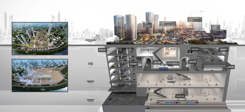 ? ? 重慶渝中區(qū)十八梯片區(qū)道路及配套設(shè)施建設(shè)項(xiàng)目(EPC) 采用地上、地下復(fù)合交通體系實(shí)現(xiàn)上、下半城有機(jī)銜接 ? |