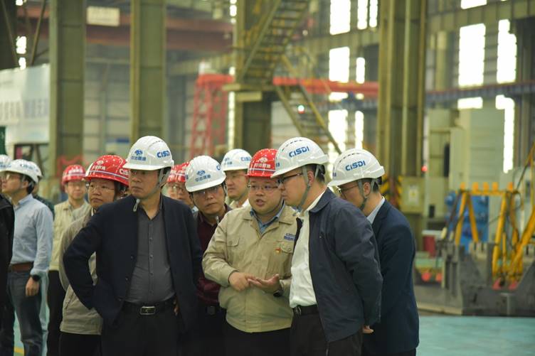 CISDI’s team shows the Baosteel delegation around its Jiangjin equipment manufacturing workshop