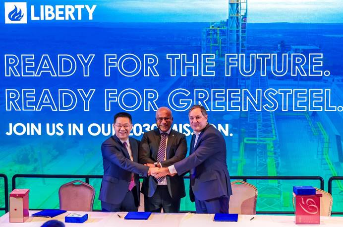 Contract-signing for the export of CISDI’s generation-3 green EAF to Europe. LtoR: Xuewen Xiao of CISDI Group, Sanjeev Gupta of LIBERTY Steel Group and Márton Nagy, Hungary’s Minister of Economic Development