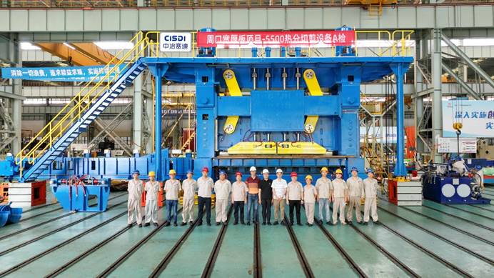 Teams from Zhoukou 5,500mm HPM and CISDI celebrate the segmented shear’s ex-works inspection at CISDI Equipment